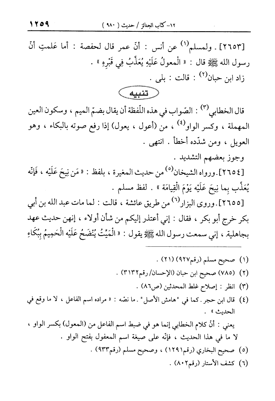 [2653]- ولمسلم (¬1) عن أنس: أنّ عمر قال لحفصة: أما عَلمتِ أنّ رسول الله-صلى الله عليه وسلم- قال: "الْمعولُ عَلَيْهِ يُعَذبُ في قَبْرِهِ".