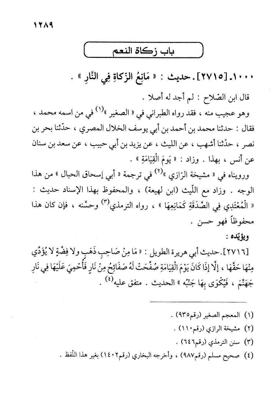 1000 - [2715]- حديث: "مَانِعُ الؤّكاةِ في النَّارِ".