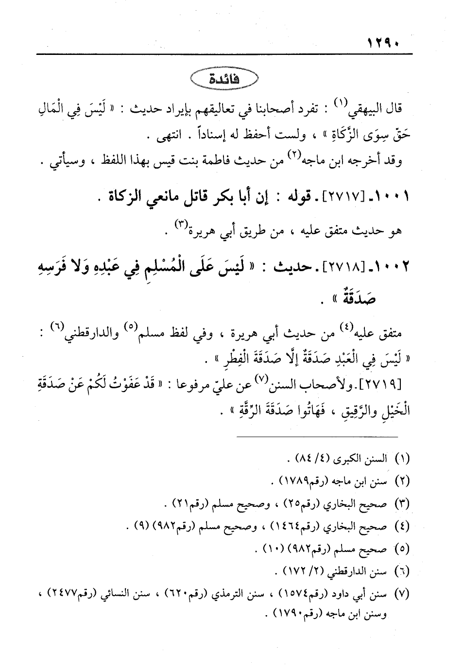 1002 - [2718] حديث: "لَيْسَ عَلَى الْمسْلِمِ في عَبْدِهِ وَلا فَرَسِهِ صَدَقَةٌ".