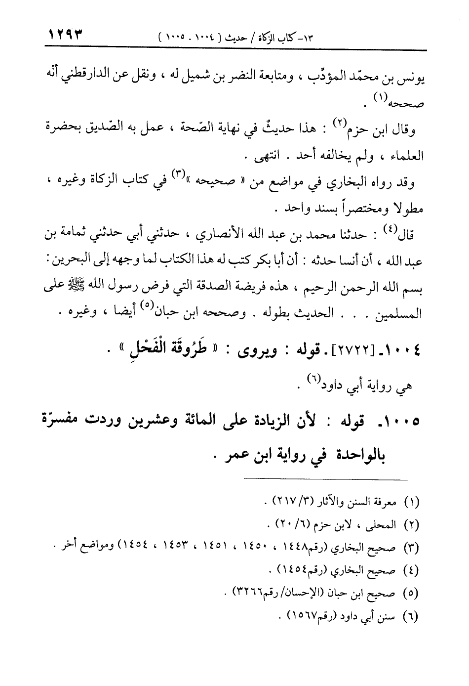 1005 - قوله: لأنّ الزيادة على المائة وعشرين وردت مفسرّة بالواحدة في رواية ابن عمر.