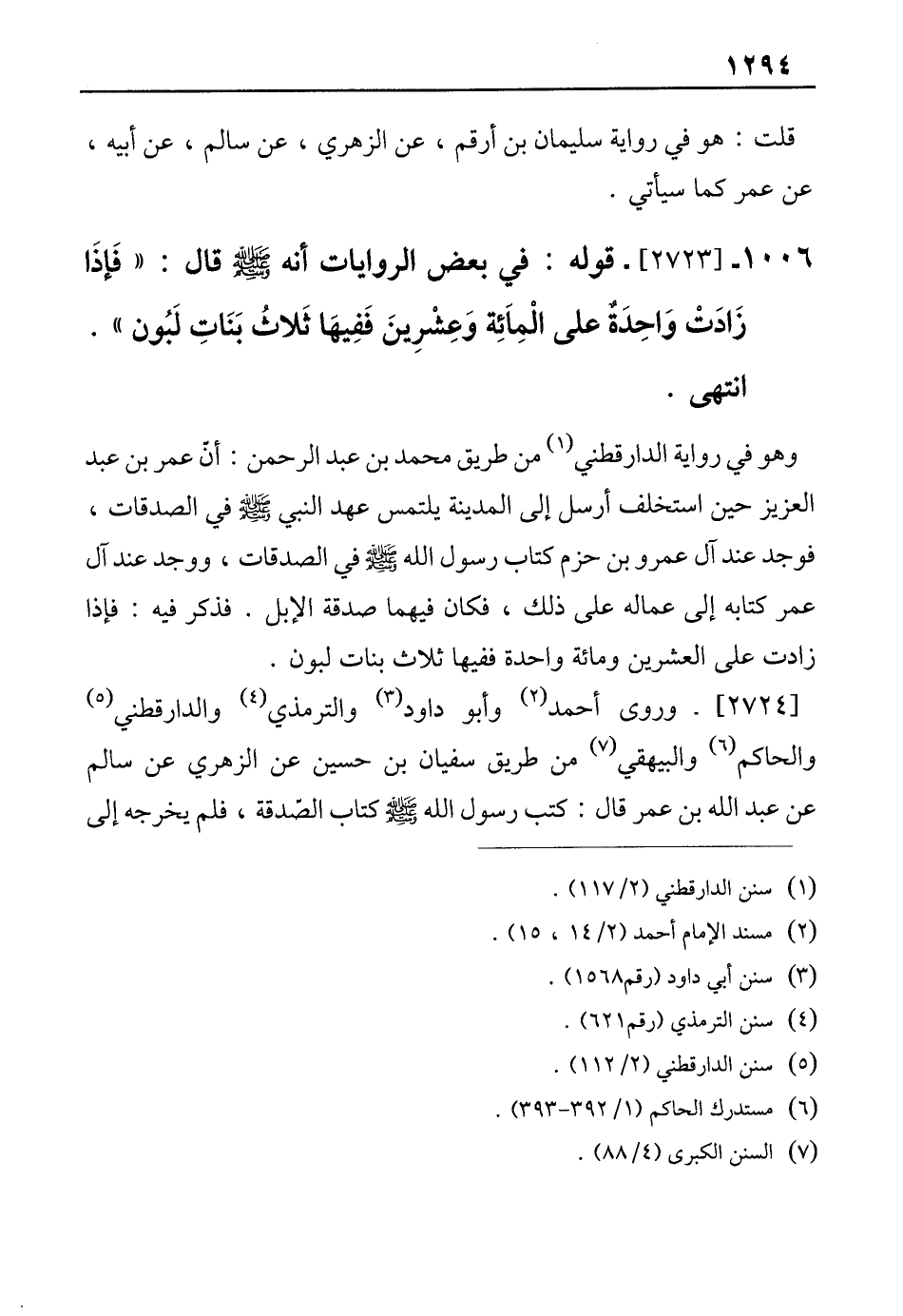 1006 - [2723]- قوله: في بعض الروايات أنه - صلى الله عليه وسلم - قال: "فَإذَا زَادَتْ وَاحِدَة على الْمِاَئِة وَعِشْرِينَ فَفِيهَا ثَلاثُ بَنَاتِ لَبُون".