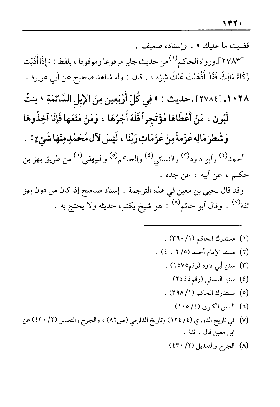أحمد (¬2) وأبو داود (¬3) والنسائي (¬4) والحاكم (¬5) والبيهقي (¬6) من طريق بهز بن حكيم، عن أبيه، عن جده.