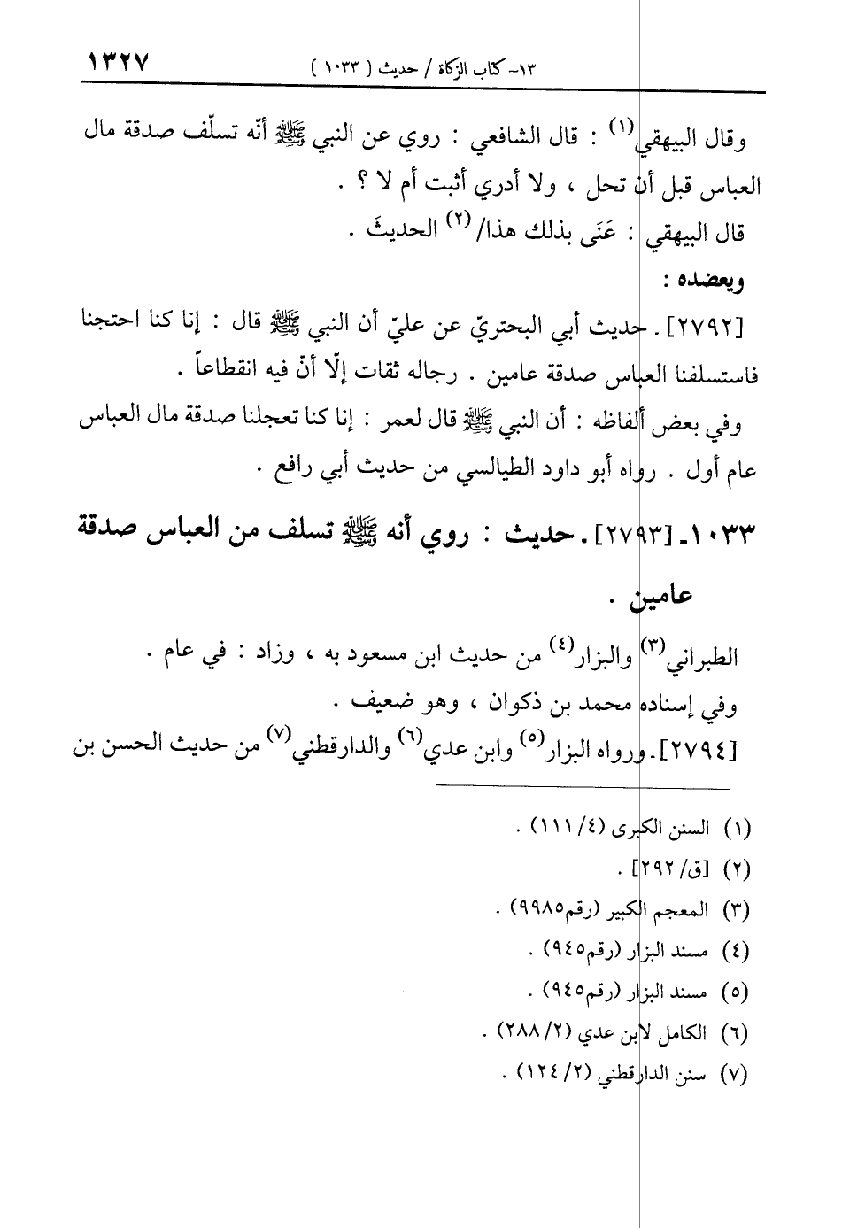 1033 - [2793]- حديث: روي أنه - صلى الله عليه وسلم - تسلف من العباس صدقة عامين".