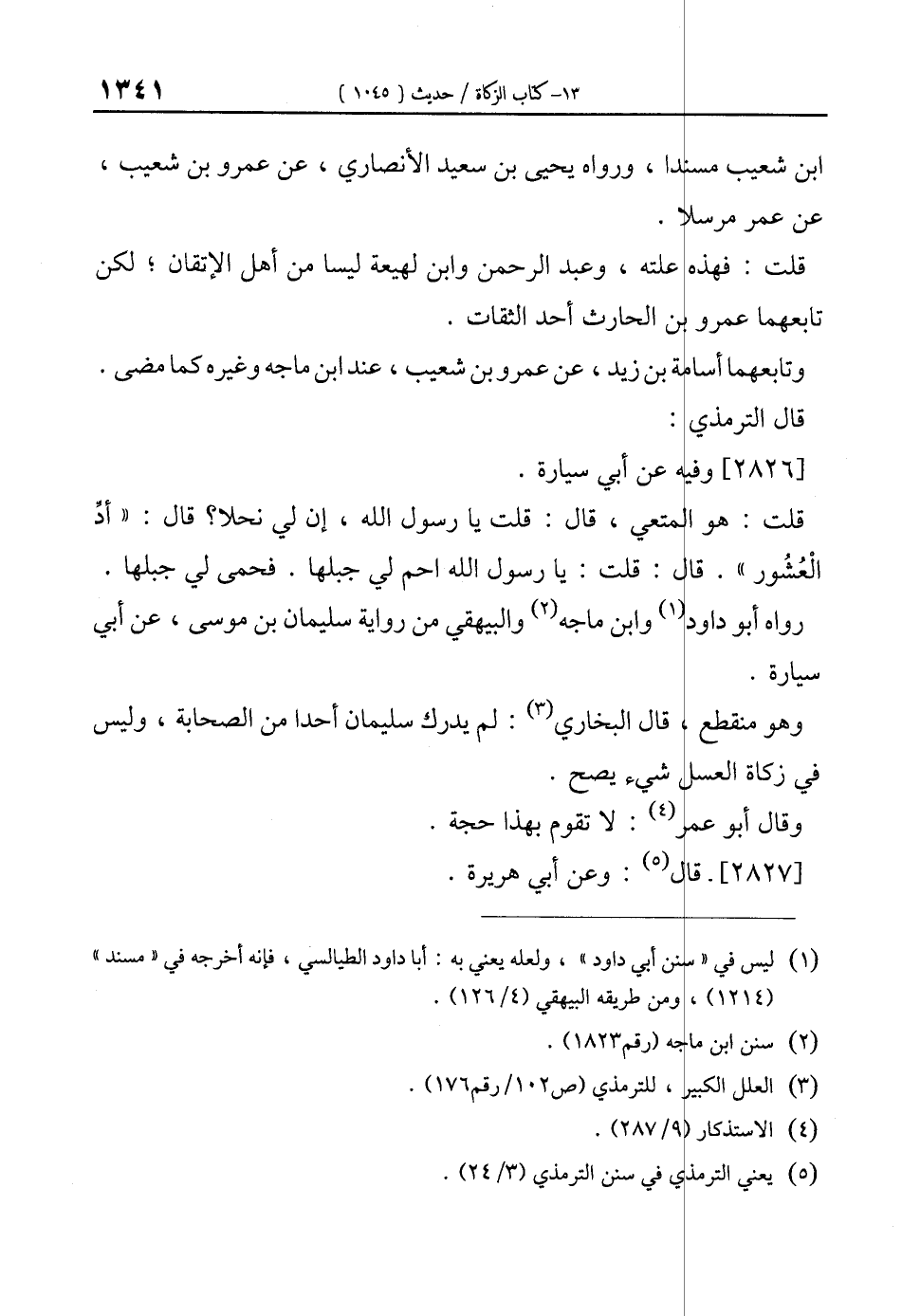 قلت: هو المتعي , قال: قلت يا رسول الله، إن لي نحلا؟ قال: "أدّ الْعُشُور"