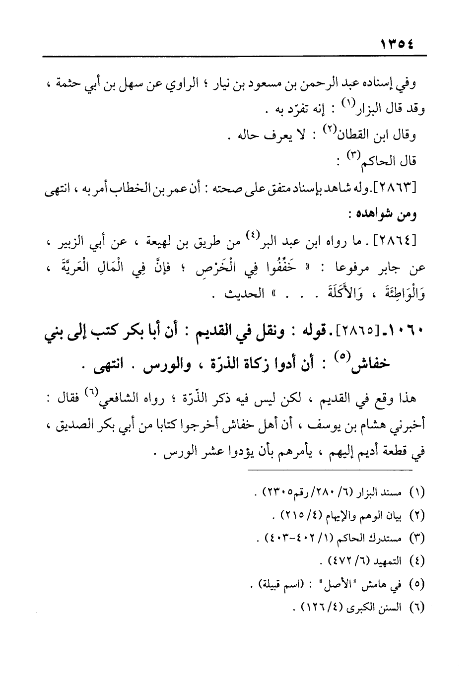 1060 - [2865]- قوله: ونقل في القديم: أن أبا بكر كتب إلى بني خفاش (¬5) أن أدوا زكاة الذرّة، والورس. انتهى.