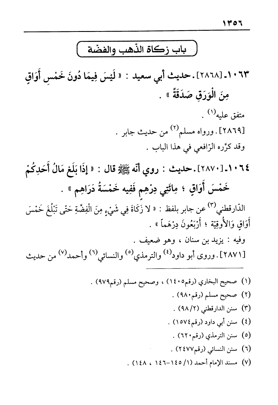 1063 - [2868]- حديث أبي سعيد: "لَيسَ ليمَا دُونَ خَمْسِ أَوَاقٍ مِنَ الْوَرَقِ صَدَقَةٌ".