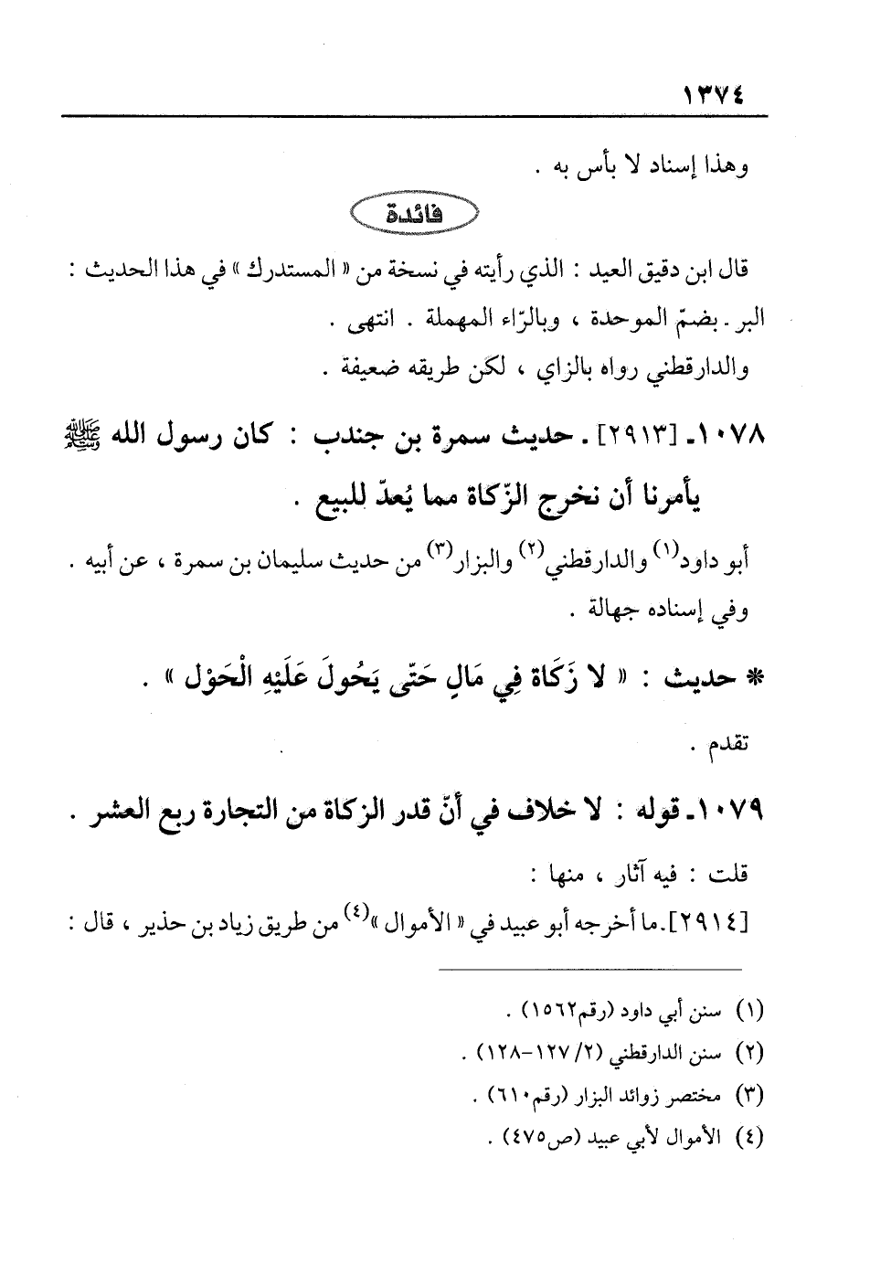 1079 - قوله: لا خلاف فعي أنّ قدر الزكاة متن التجارة ربع العشر.