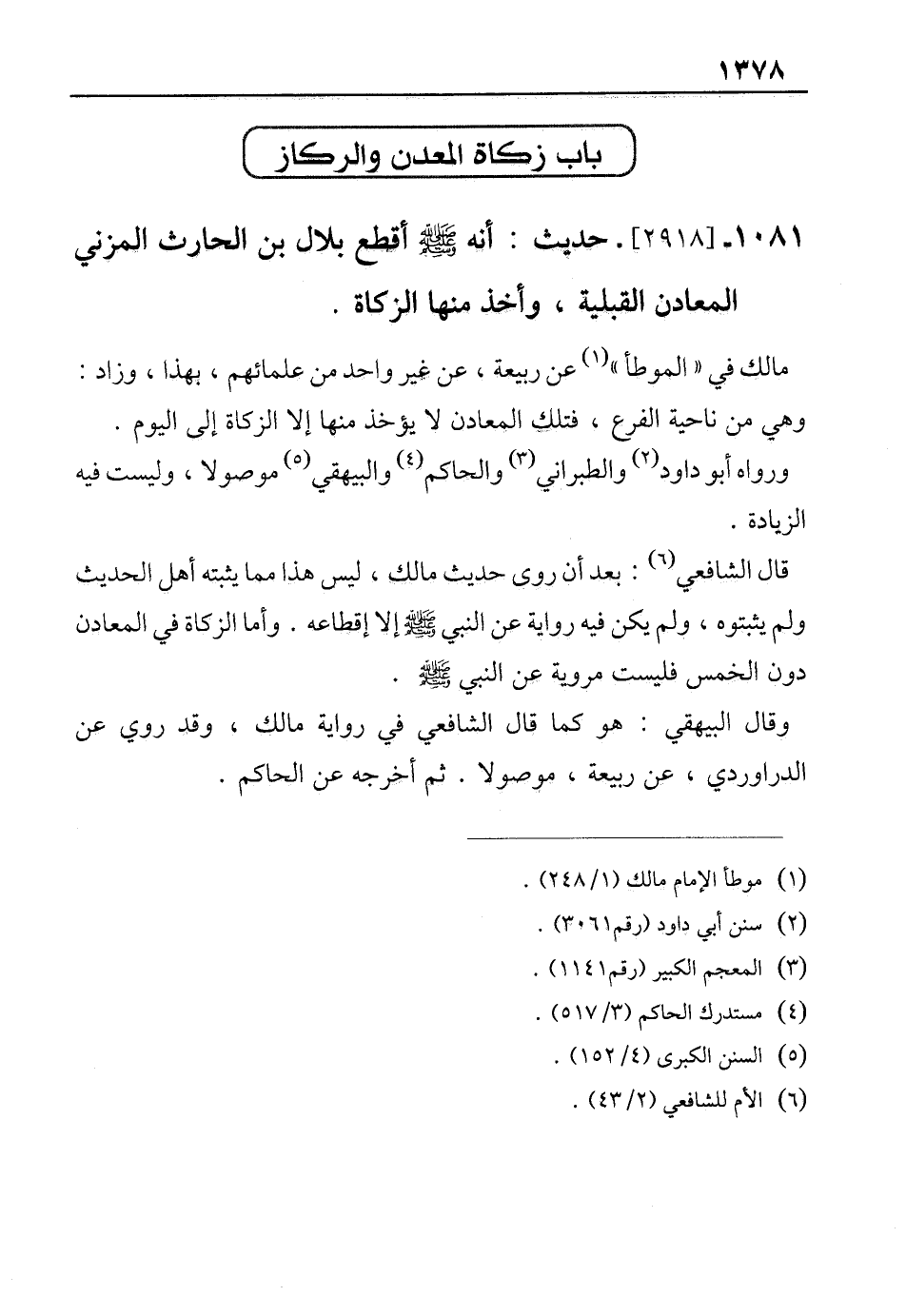 1081 - [2918]- حديث: أنه - صلى الله عليه وسلم - أقطع بلال بن الحارث المزني المعادن القبلية، وأخذ منها الزكاة.