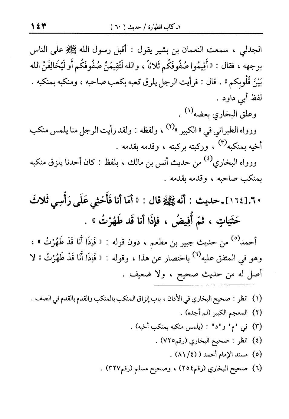 (¬1) انظر: صحيح البخاري في الأذان، باب إلزاق المنكب بالمنكب والقدم بالقدم في الصف.