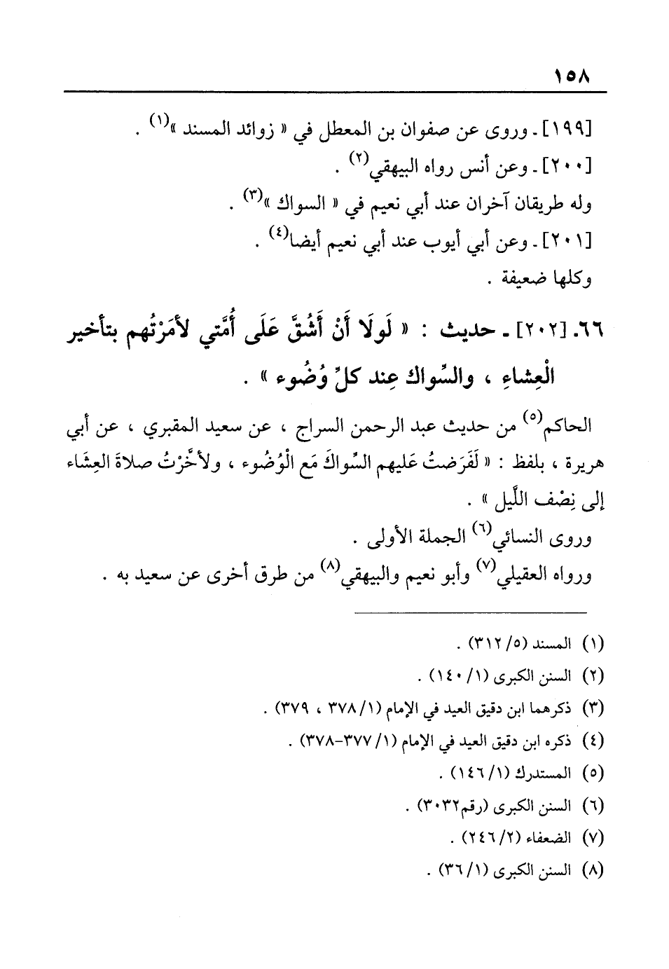66 - [202]- حديث: "لَولاَ أَنْ أَشقَّ عَلَى أمَّتي لأمَرْتهم بتأخير الْعِشاءِ، والسِّواك عِند كلِّ وُضُوء".