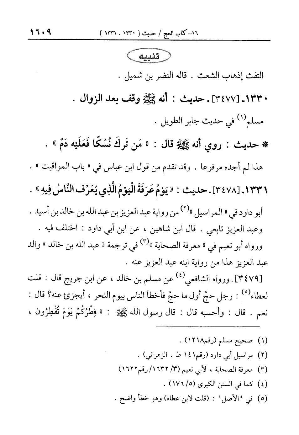 1331 - [3478]- حديث: "يَوْمُ عَرَفَةَ الْيَوْمُ الَّذِي يُعَرِّف النَّاسُ فِيهِ".