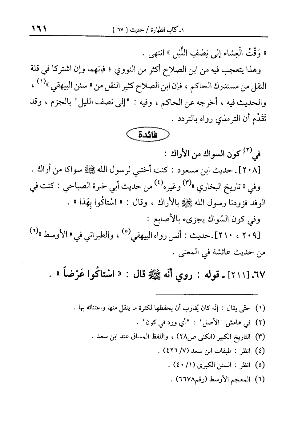 67 - [211]- قوله: روي أنّه - صلى الله عليه وسلم - قال: "اسْتاكوا عَرْضاً".