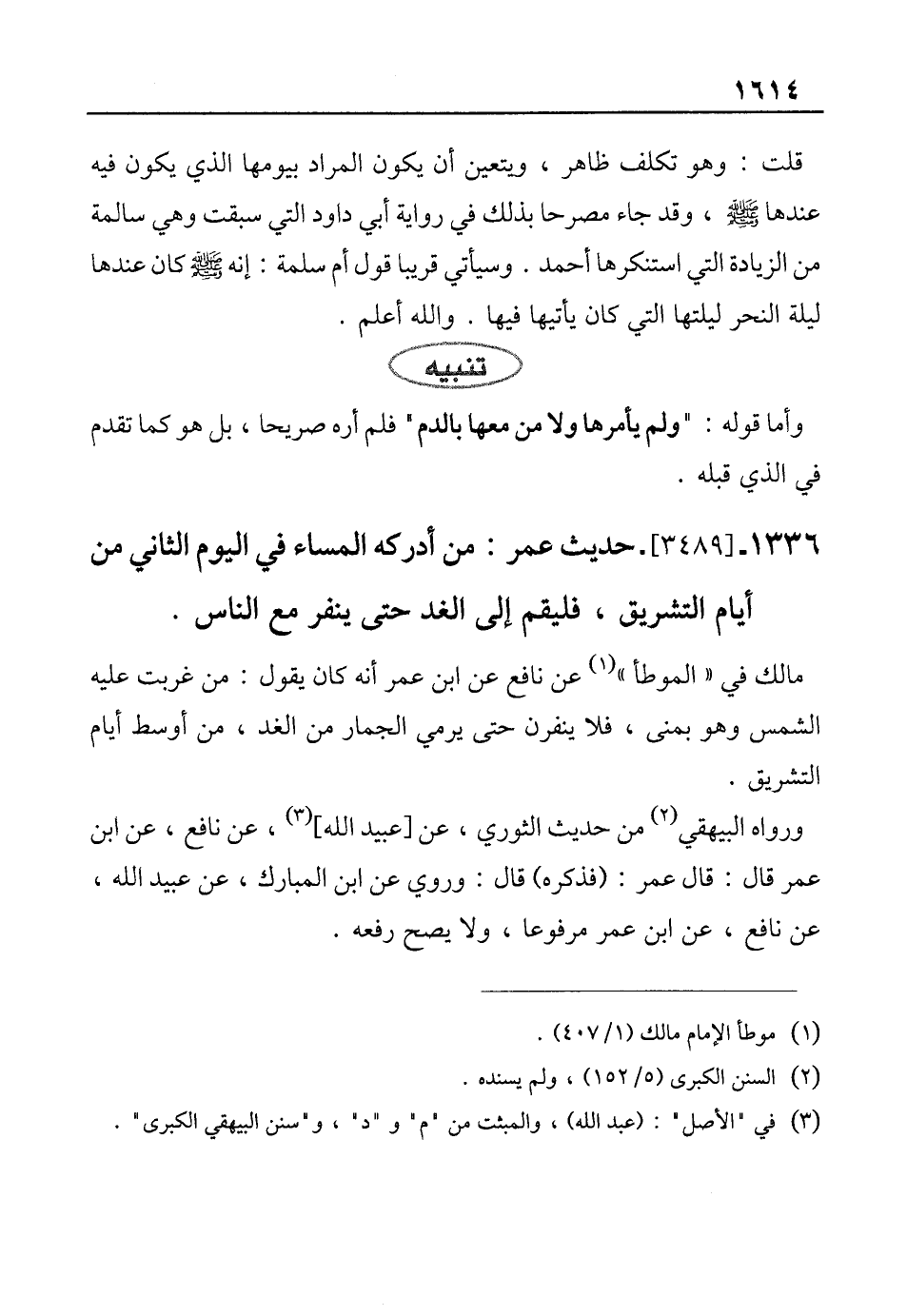 1336 - [3489]- حديث عمر: من أدركه المساء في اليوم الثاني من أيام التشريق، فليقم إلى الغد حتى ينفر مع الناس.