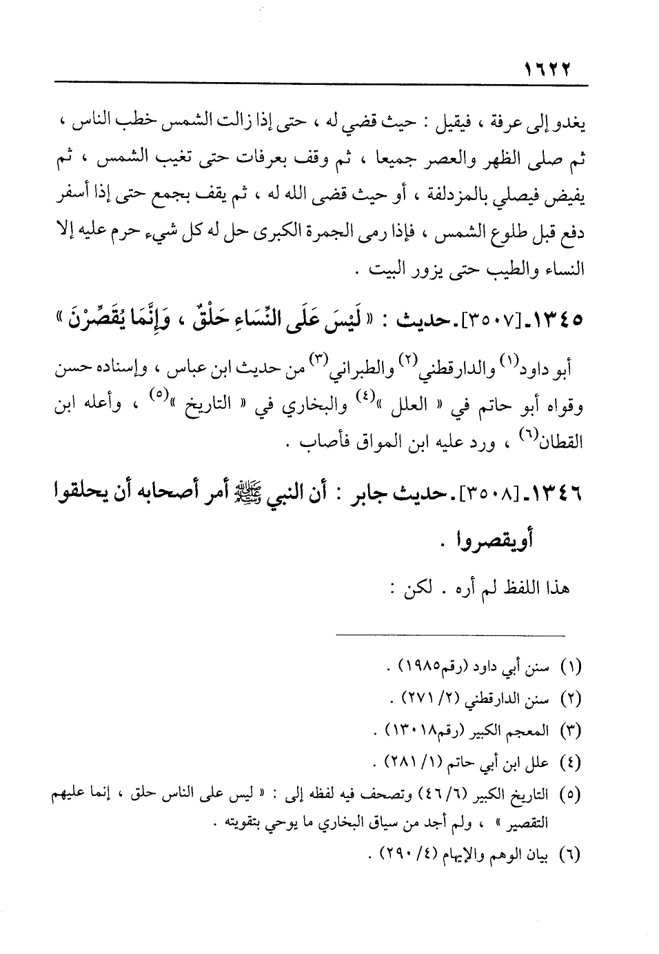 1345 - [3507]- حديث: "لَيْسَ عَلَى النِّسَاءِ حَلْقٌ، وإنَّمَا يُقَصِّرْنَ".