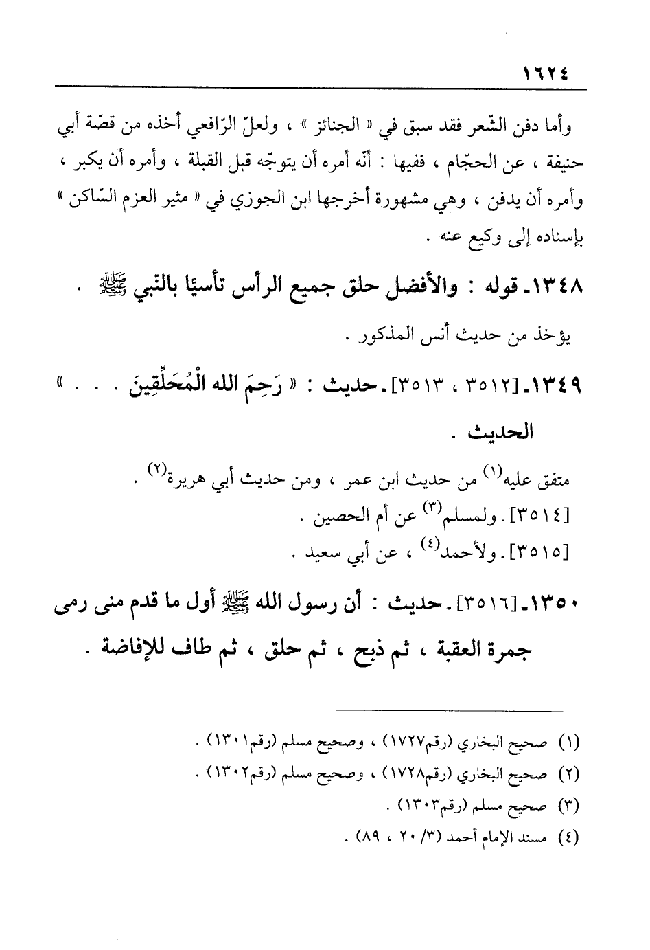 1348 - قوله: والأفضل حلق جميع الرأس تأسيًّا بالنّبي - صلى الله عليه وسلم -.