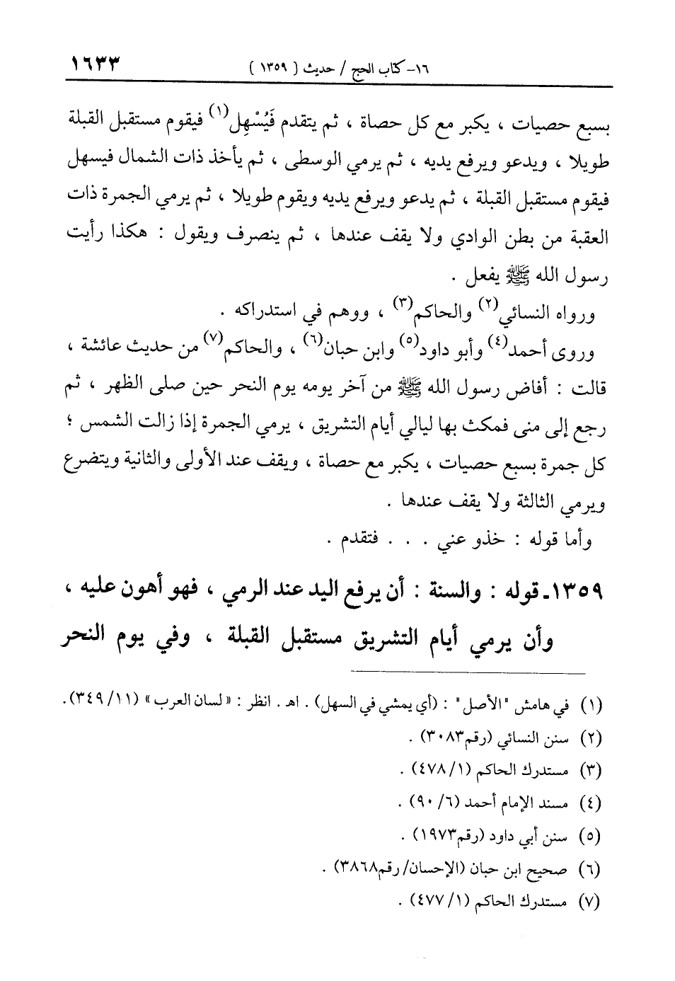 1359 - قوله: والسنة: أن يرفع اليد عند الرمي، فهو أهون عليه، وأن يرمي أيام التشريق مستقبل القبلة، وفي يوم النحر