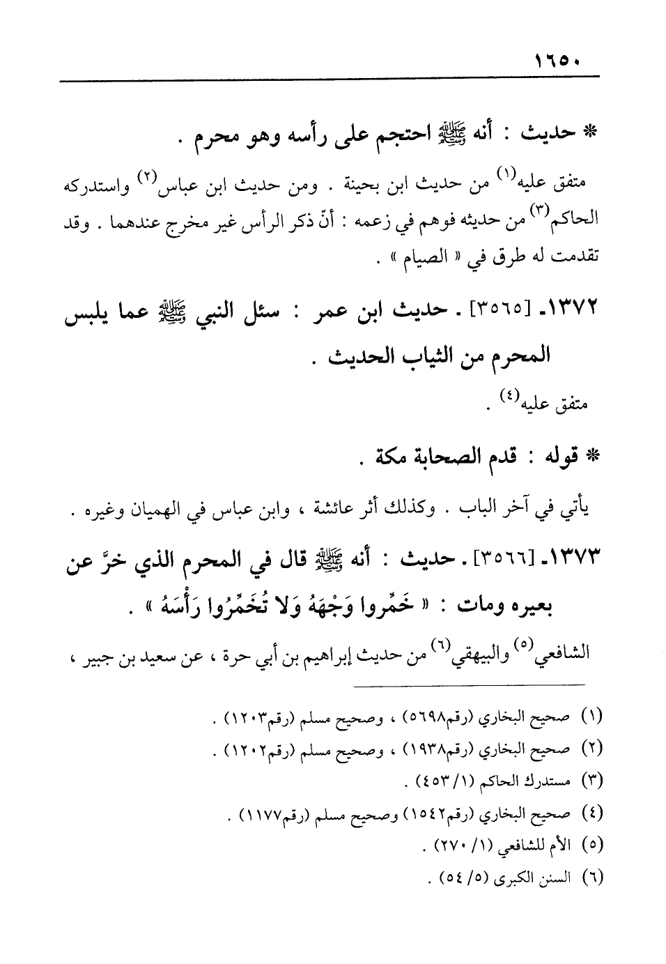 1373 - [3566]- حديث: أنه - صلى الله عليه وسلم - قال في المحرم الذي خرَّ عن بعيره ومات: "خَمّروا وَجْهَهُ وَلا تُخَمِّرُوا رَأْسَهُ".