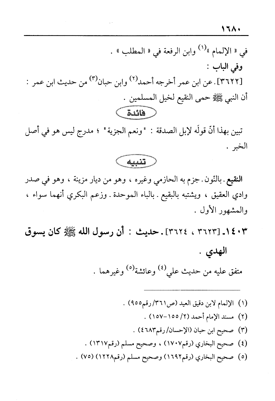 [3622]- عن ابن عمر أخرجه أحمد (¬2) وابن حبان (¬3) من حديث ابن عمر: أن النبي صلى الله عليه وسلم حمى النقيع لخيل المسلمين.