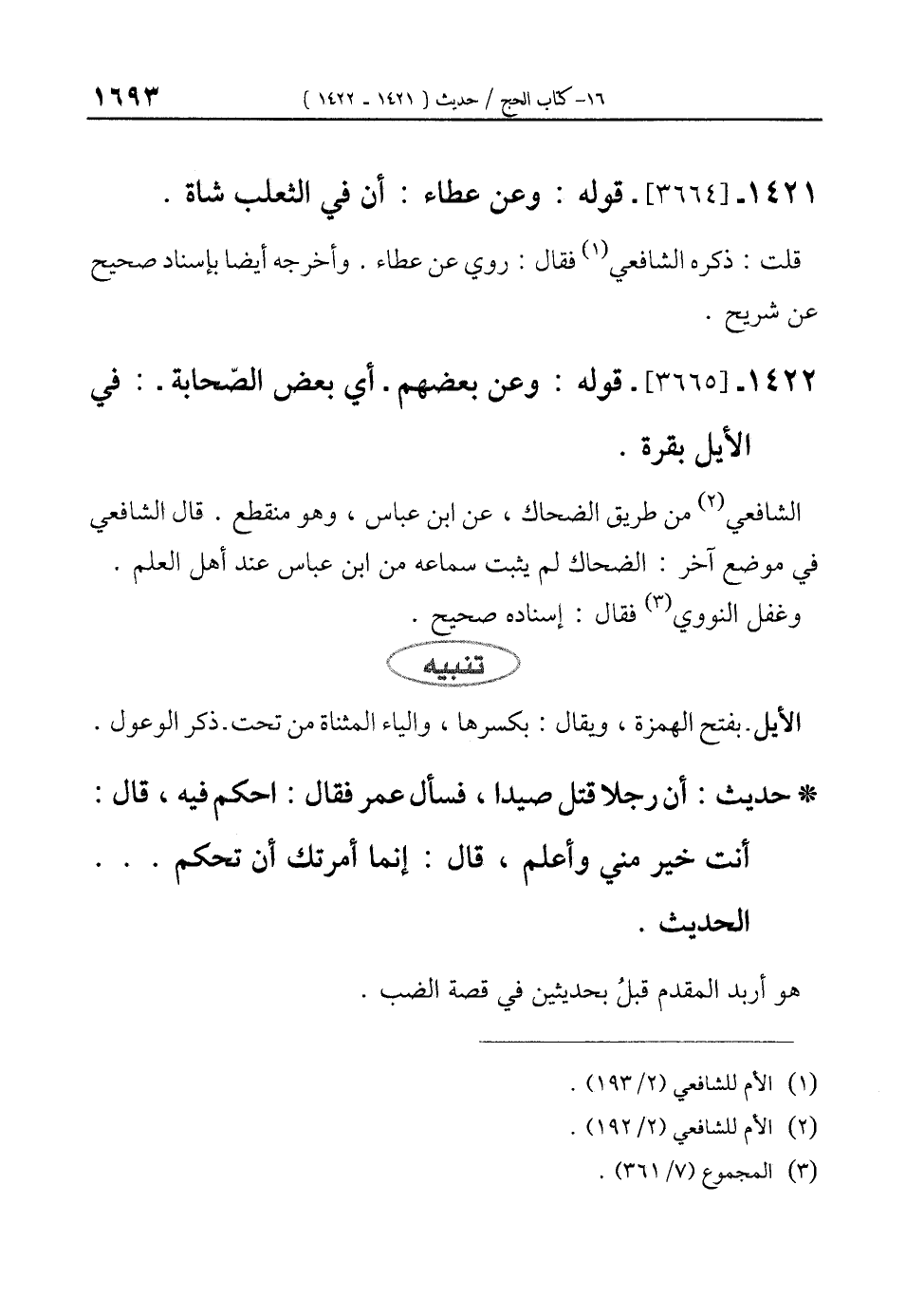 1422 - [3665]- قوله: وعن بعضهم. أي بعض الصّحابة: في الأيل بقرة.