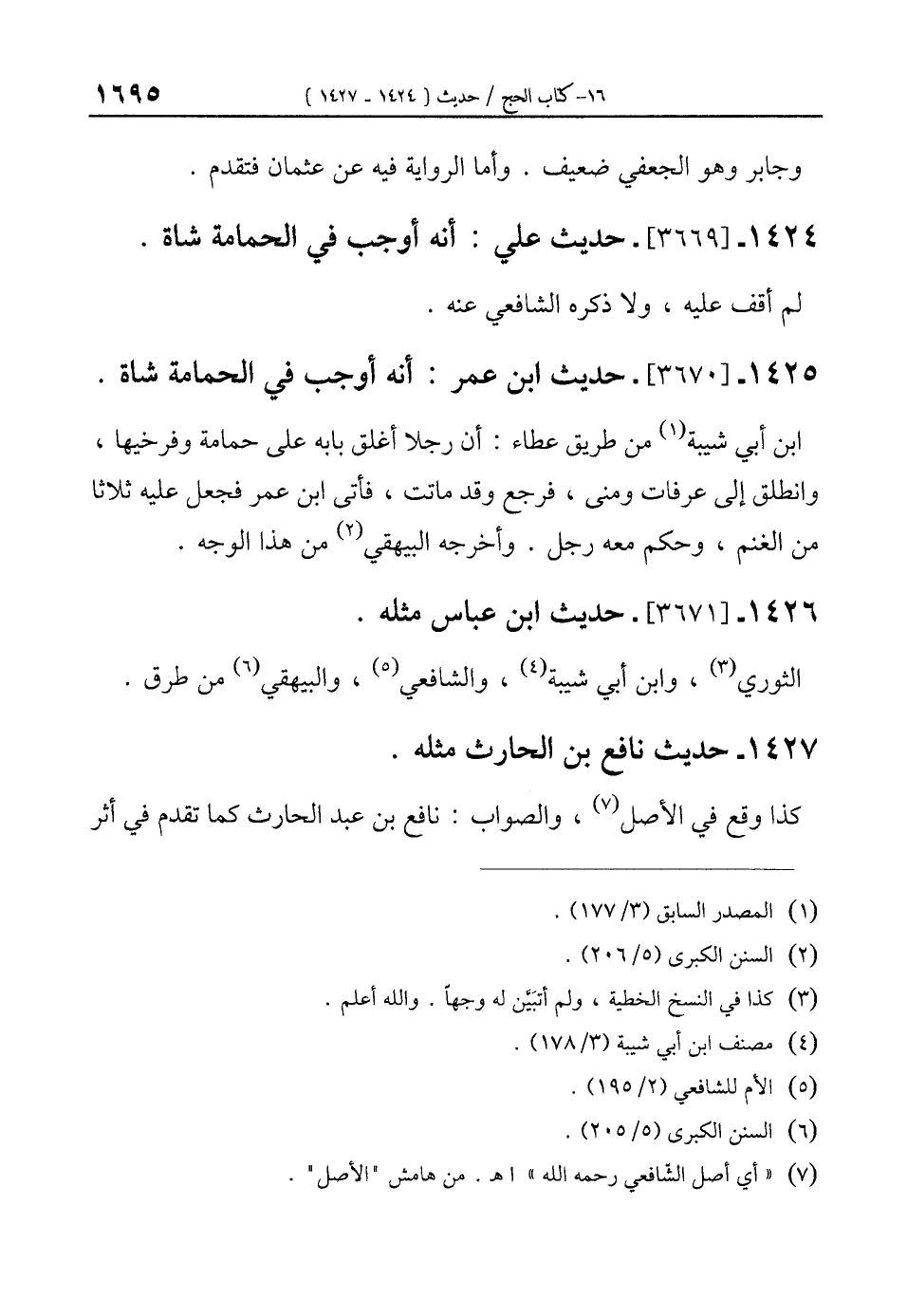 1424 - [3669]- حديث علي: أنه أوجب في الحمامة شاة.