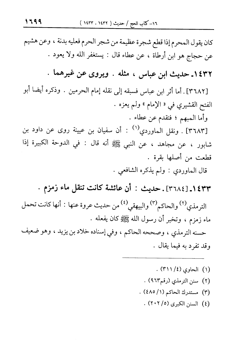 1433 - [3684]- حديث: أن عائشة كانت تنقل ماء زمزم.