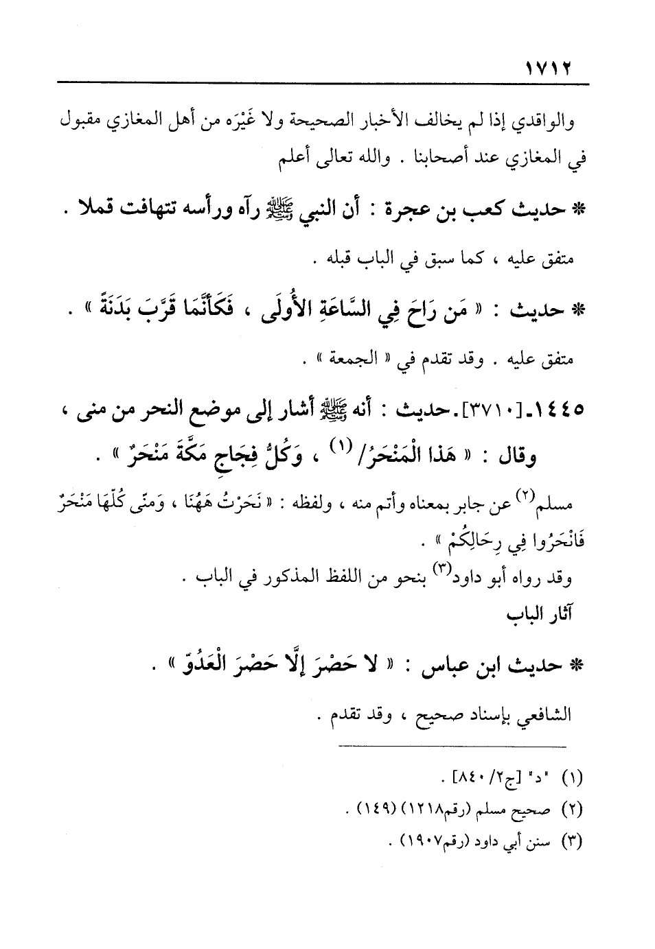 1445 - [3710]- حديث: أنه صلى الله عليه وسلم أشار إلى موضع النحر من منى، وقال: "هَذا الْمَنْحَرُ (¬1)، وَكلُّ فِجَاجِ مَكَّةَ مَنْحَرٌ".