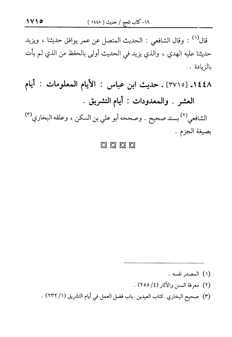 1448 - [3715]- حديث ابن عباس: الأيام المعلومات: أيام العشر. والمعدودات: أيام التشريق.