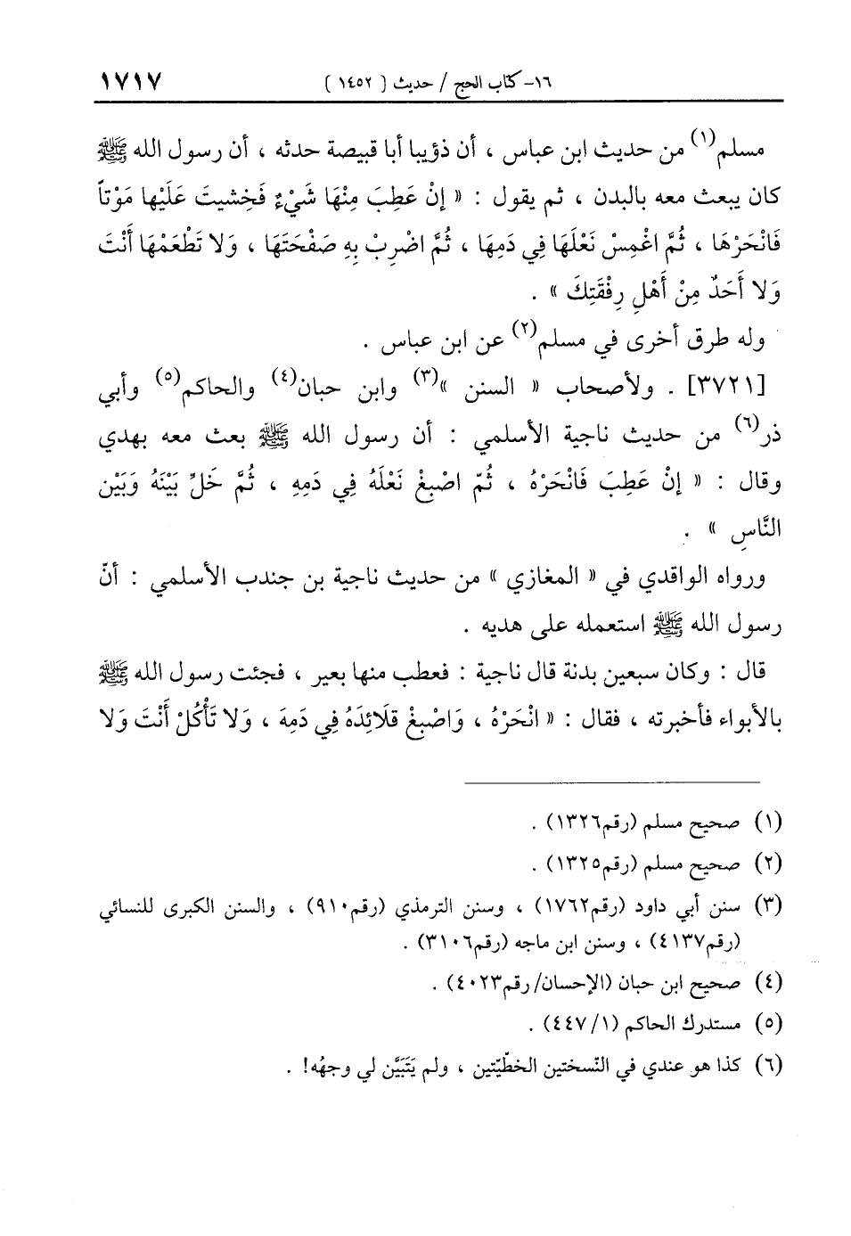 (¬3) سنن أبي داود (رقم 1762)، وسنن الترمذي (رقم 910)، والسنن الكبرى للنسائي (رقم4137)، وسنن ابن ماجه (رقم3106).