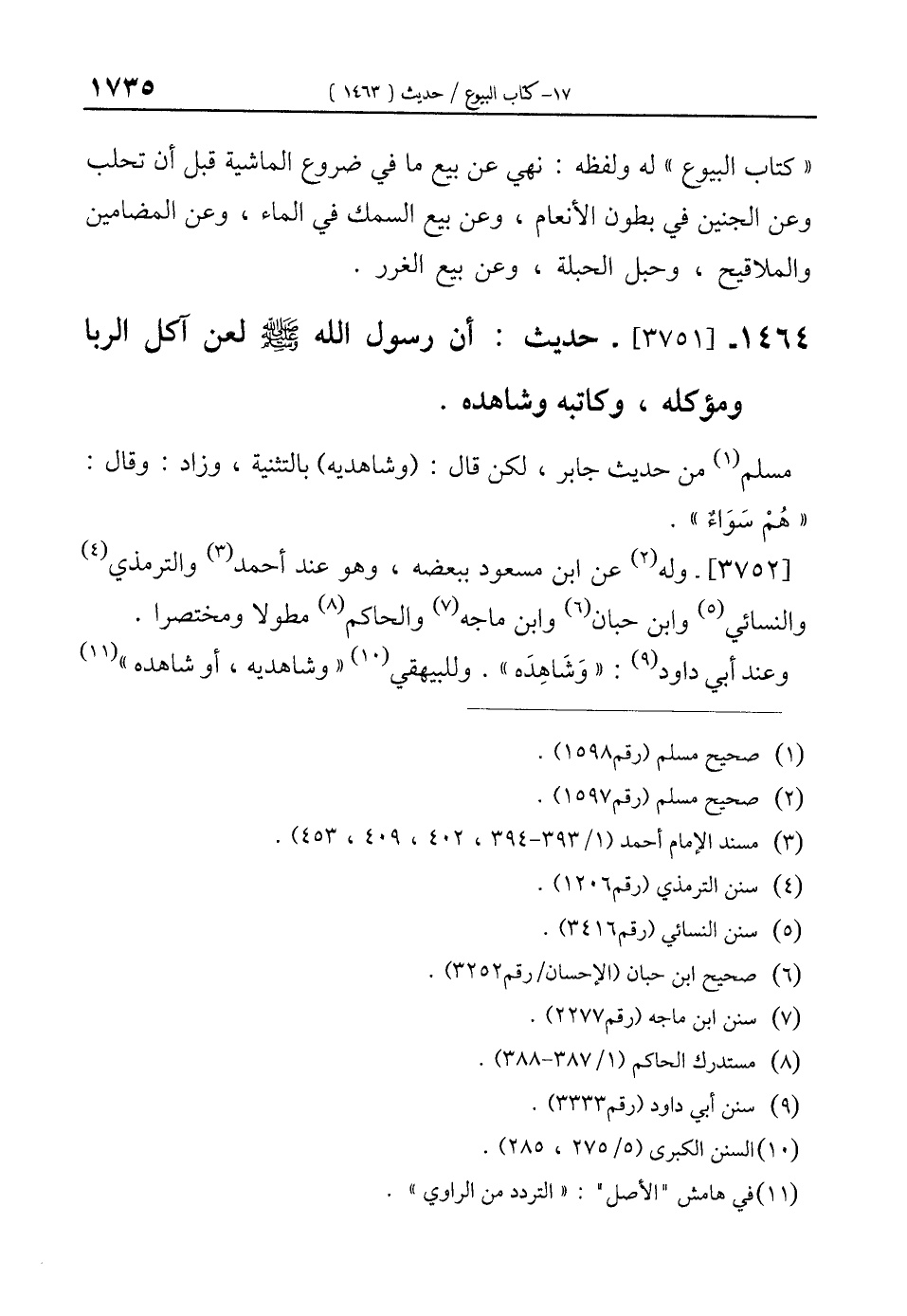 1464 - [3751]- حديث: أن رسول الله صلى الله عليه وسلم لعن آكل الربا ومؤكله، وكاتبه وشاهده.