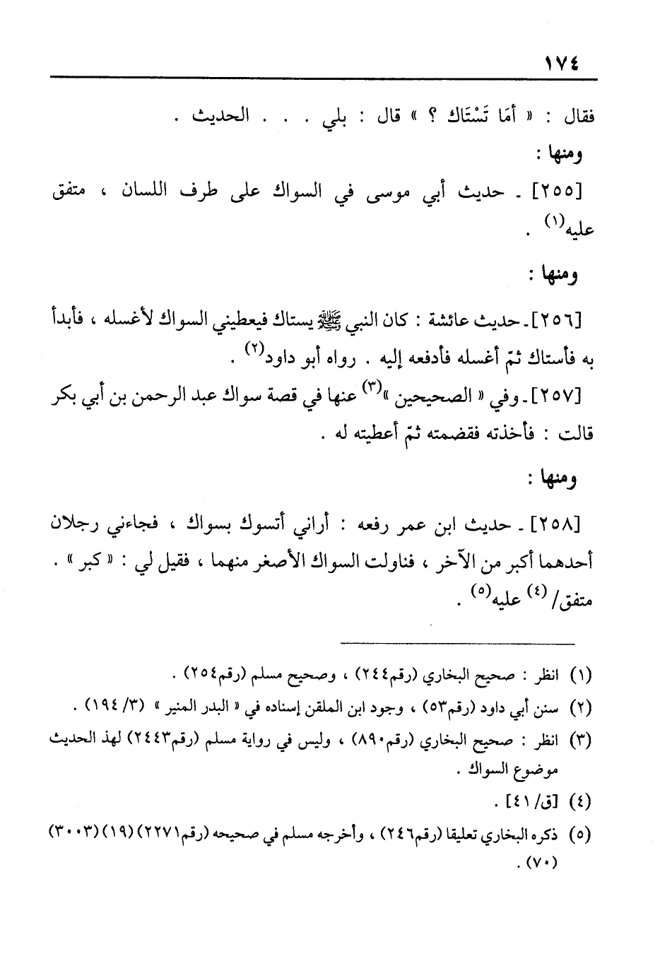 [256]- حديث عائشة: كان النبي - صلى الله عليه وسلم - يستاك فيعطيني السواك لأغسله، فأبدأ به فأستاك ثمّ أغسله فأدفعه إليه. رواه أبو داود (¬2).