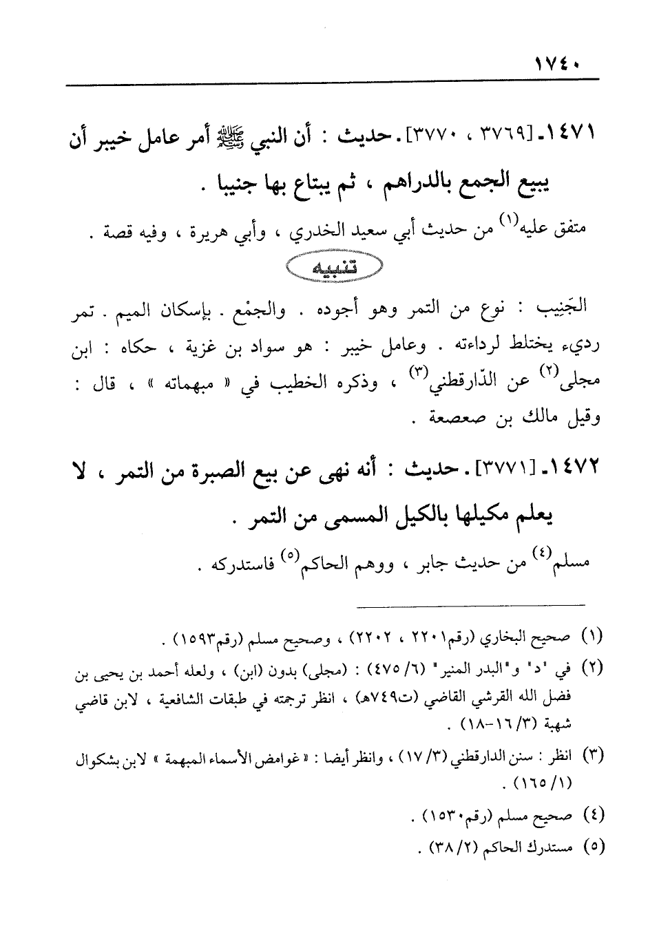 1471 - [3769، 3770]- حديث: أن النبي صلى الله عليه وسلم أمر عامل خيبر أن يبيع الجمع بالدراهم، ثم يبتاع بها جنيبا.
