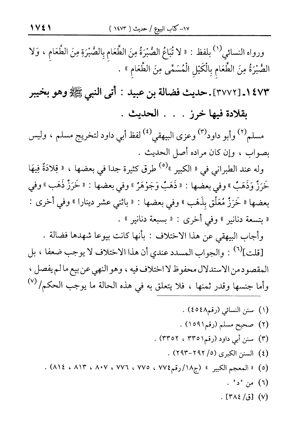 1473 - [3772]- حديث فضالة بن عبيد: أتى النبي صلى الله عليه وسلم وهو بخيبر بقلادة فيها خرز ... الحديث.