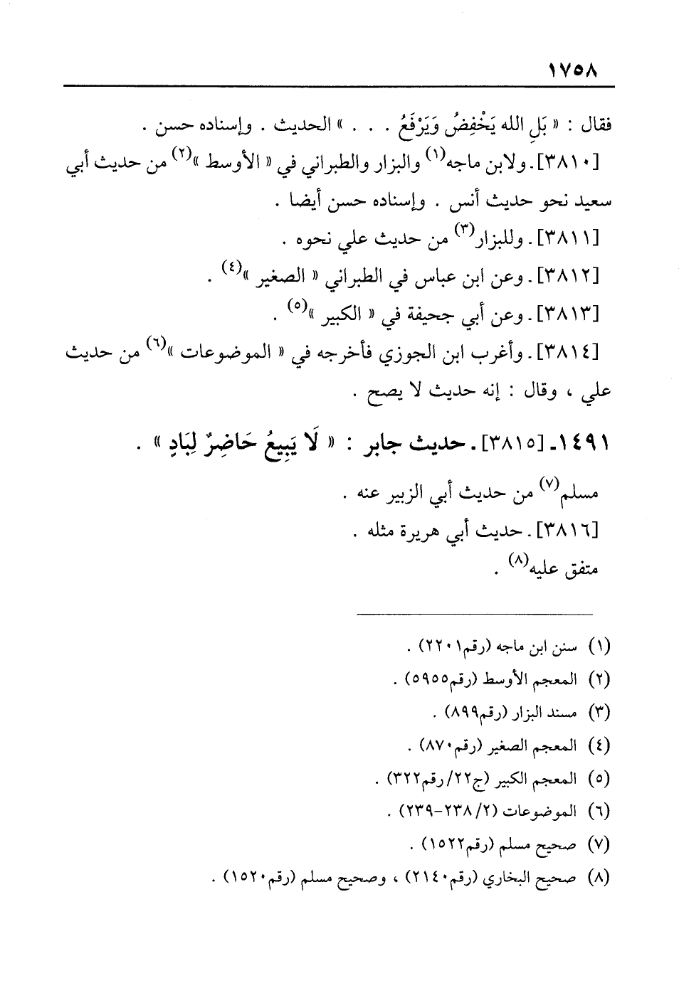 1491 - [3815]- حديث جابر: "لَا يَبِيعُ حَاضِرٌ لِبَادٍ".