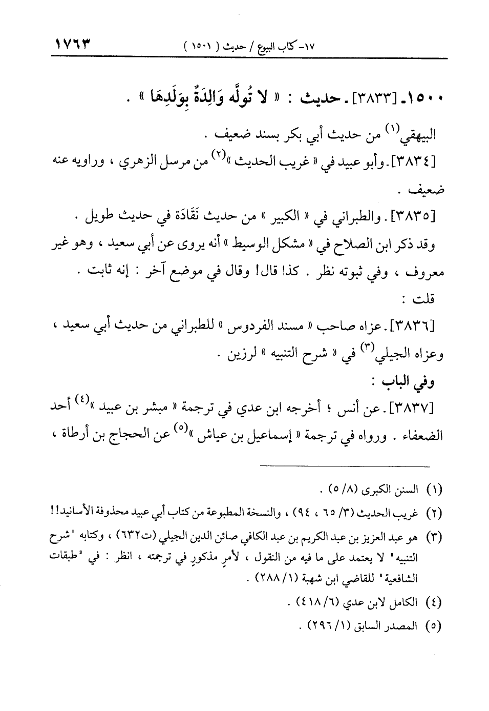 1500 - [3833]- حديث: "لا تُولَّه وَالِدَةٌ بِوَلَدِهَا".