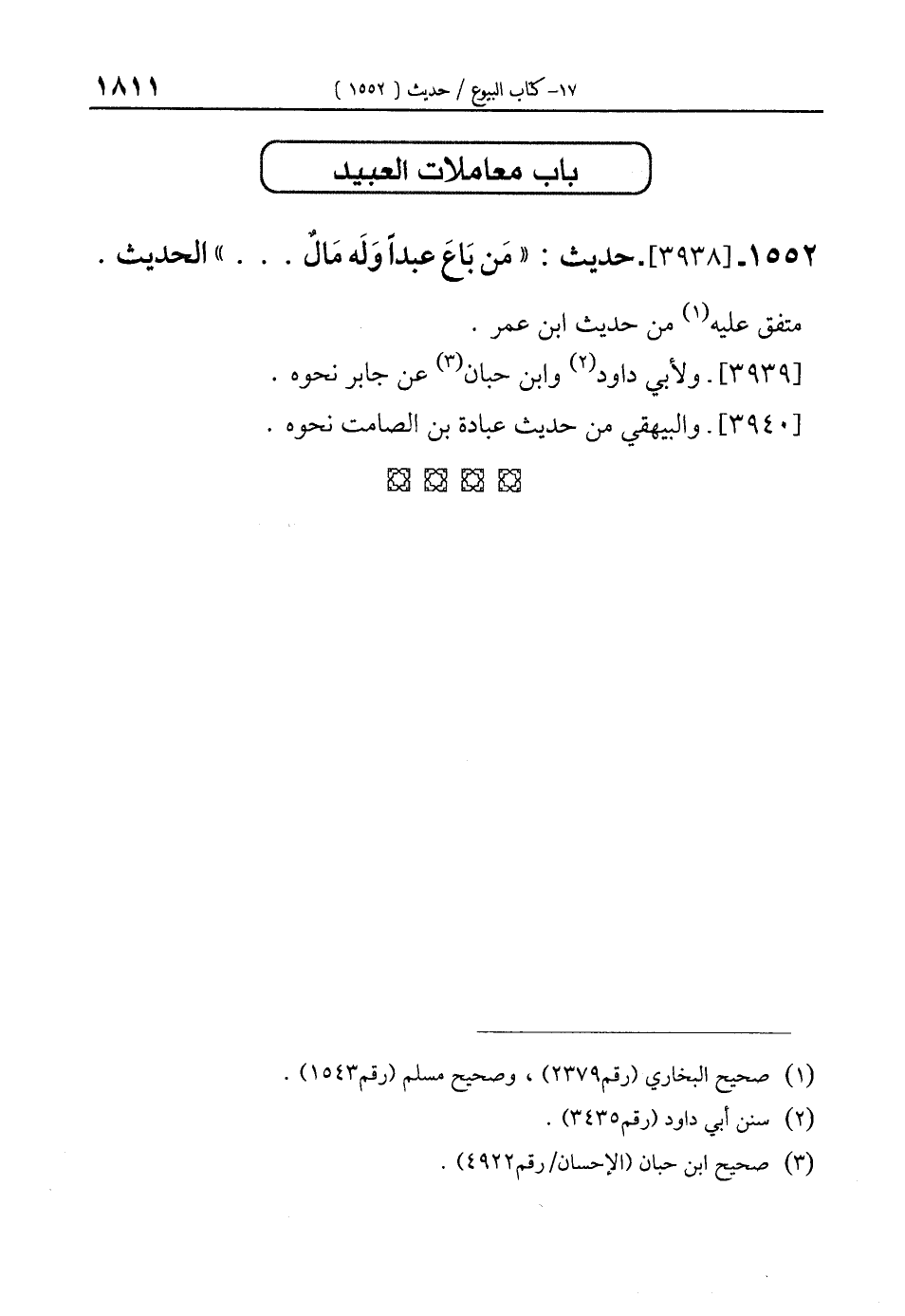 1552 - [3938]- حديث: "مَن بَاعَ عبدًا وَلَه مَالٌ ... " الحديث.