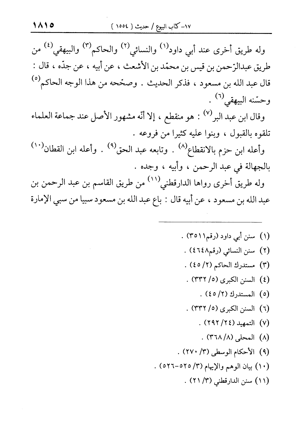 وله طريق أخرى رواها الدارقطني (¬11) من طريق القاسم بن عبد الرحمن بن عبد الله بن مسعود، عن أبيه قال: باع عبد الله بن مسعود سبيا من سبي الإمارة