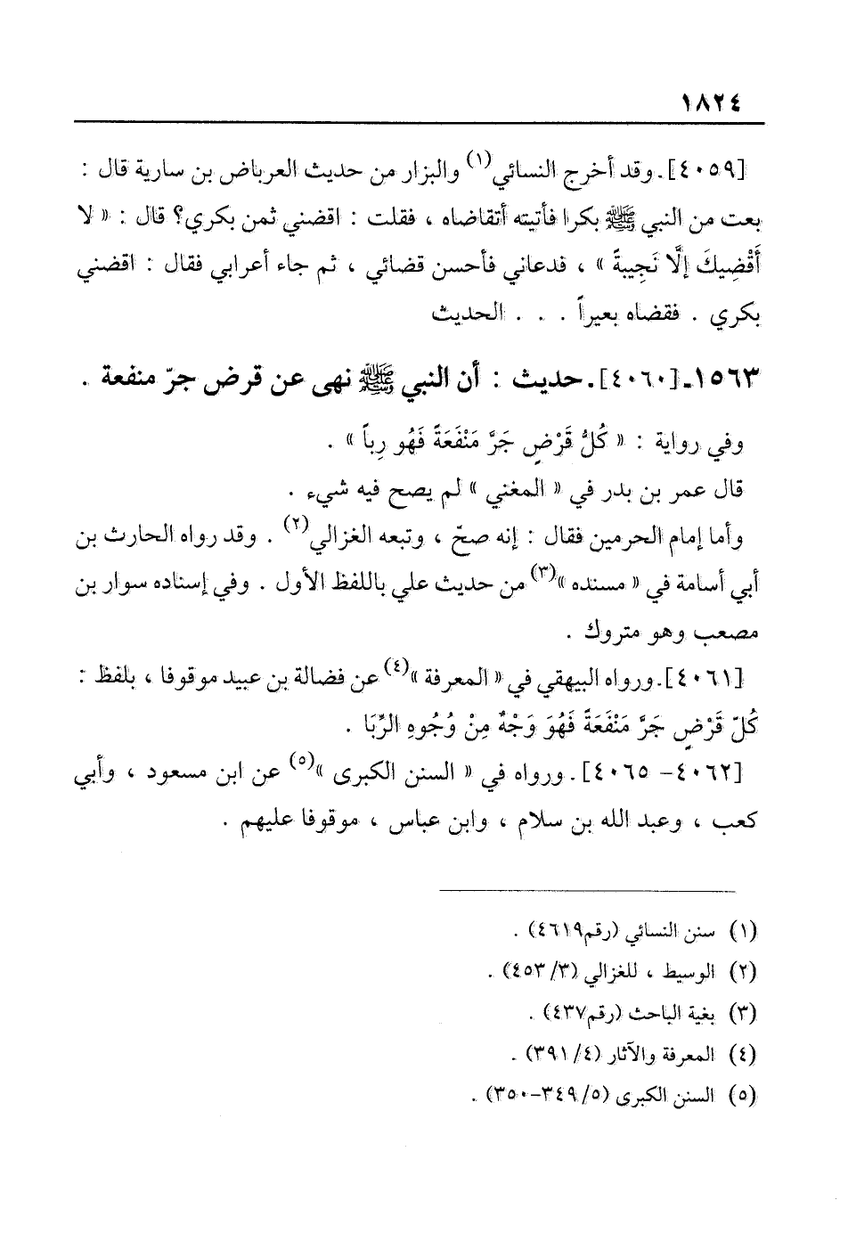 1563 - [4060]- حديث: أن النبي - صلى الله عليه وسلم - نهى عن قرض جرّ منفعة.
