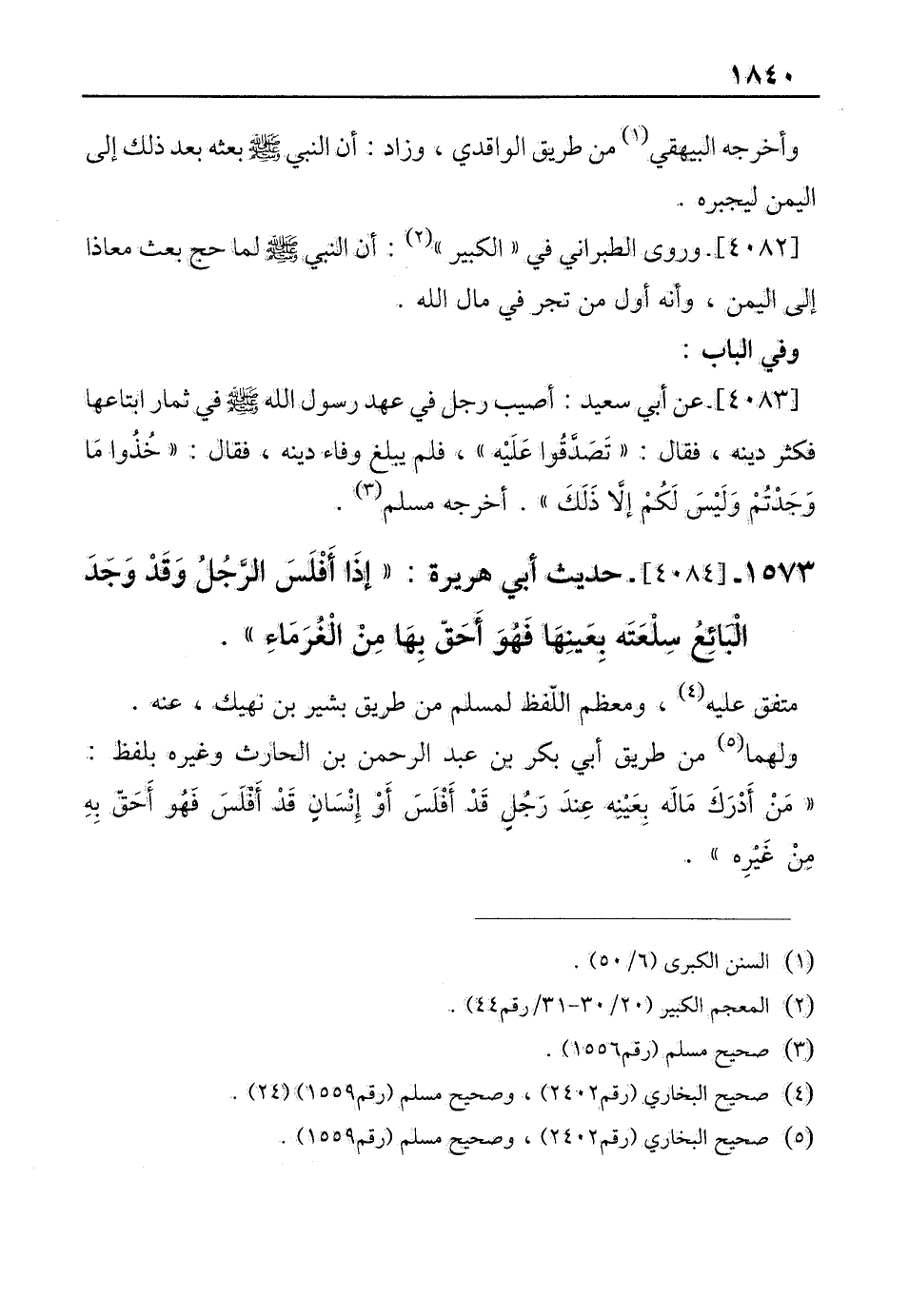 1573 - [4084]- حديث أبي هريرة: "إذَا أفْلَسَ الرجل وَقَدْ وَجَدَ الْبَائِعُ سِلْعَتَه بعَينِهَا فَهُوَ أَحَقّ بِهَا مِنْ الْغرَمَاءِ".