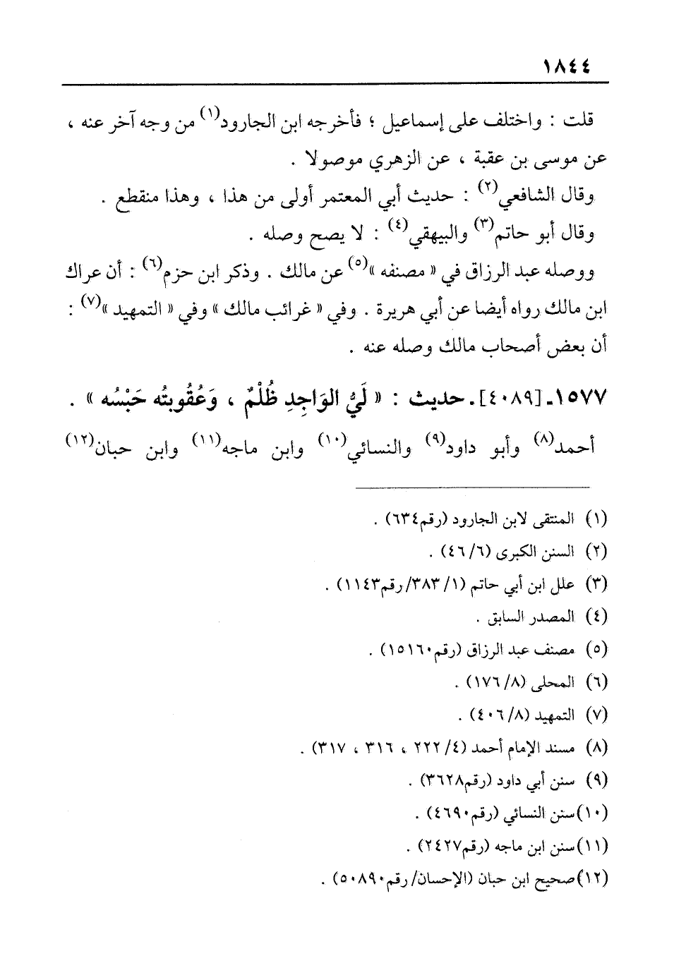 1577 - [4089]- حديث: "لَيُّ الوَاجِدِ ظُلْمٌ، وَعُقُوبتُه حَبْسُه".