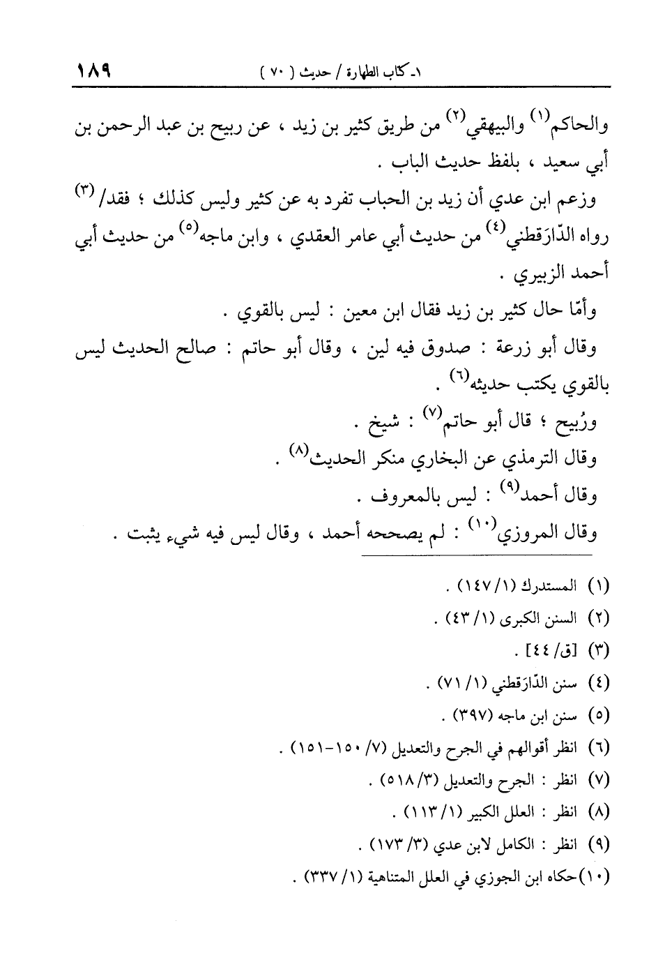 وزعم ابن عدي أن زيد بن الحباب تفرد به عن كثير وليس كذلك؛ فقد/ (¬3) رواه الدّارَقطني (¬4) من حديث أبي عامر العقدي، وابن ماجه (¬5) من حديث أبي أحمد الزبيري.