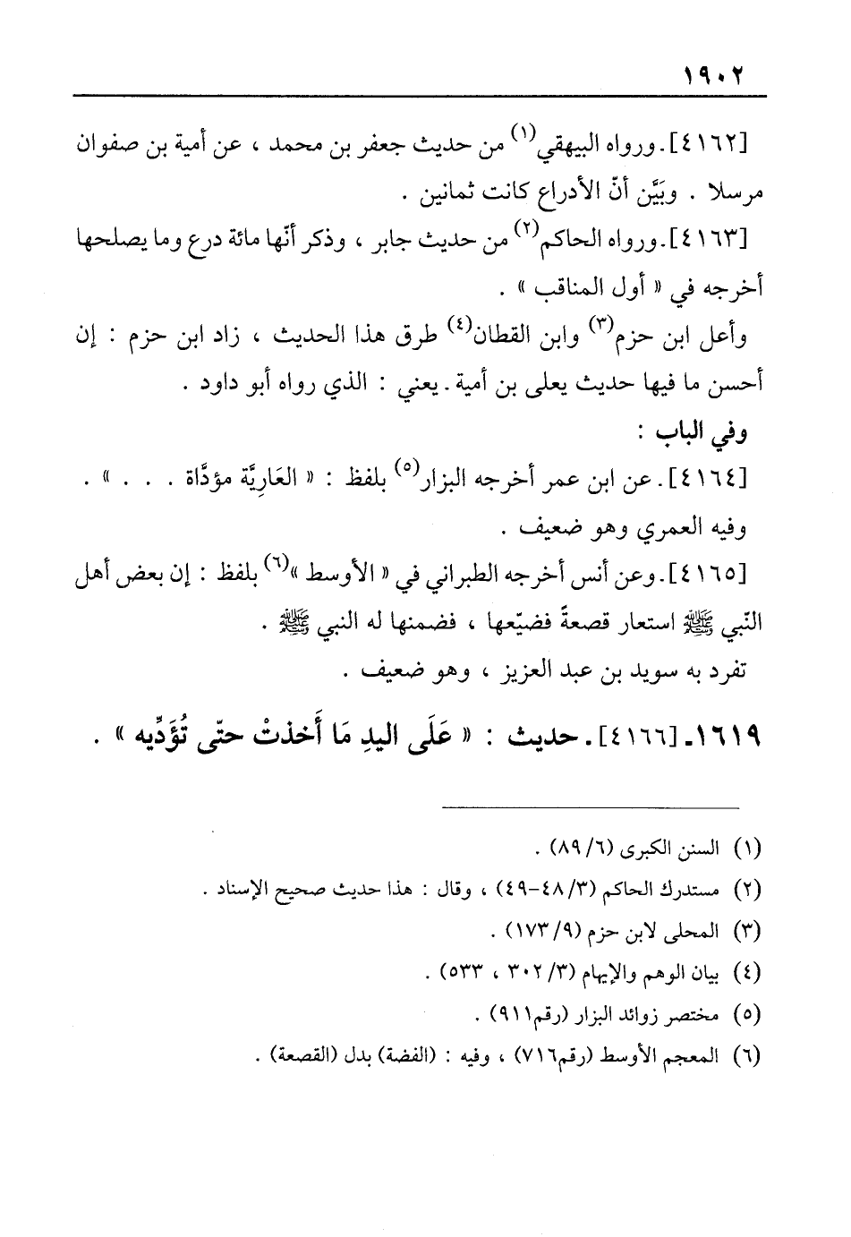 1619 - [4166]- حديث: "عَلَى اليدِ مَا أَخذتْ حتّى تؤَدِّيه".