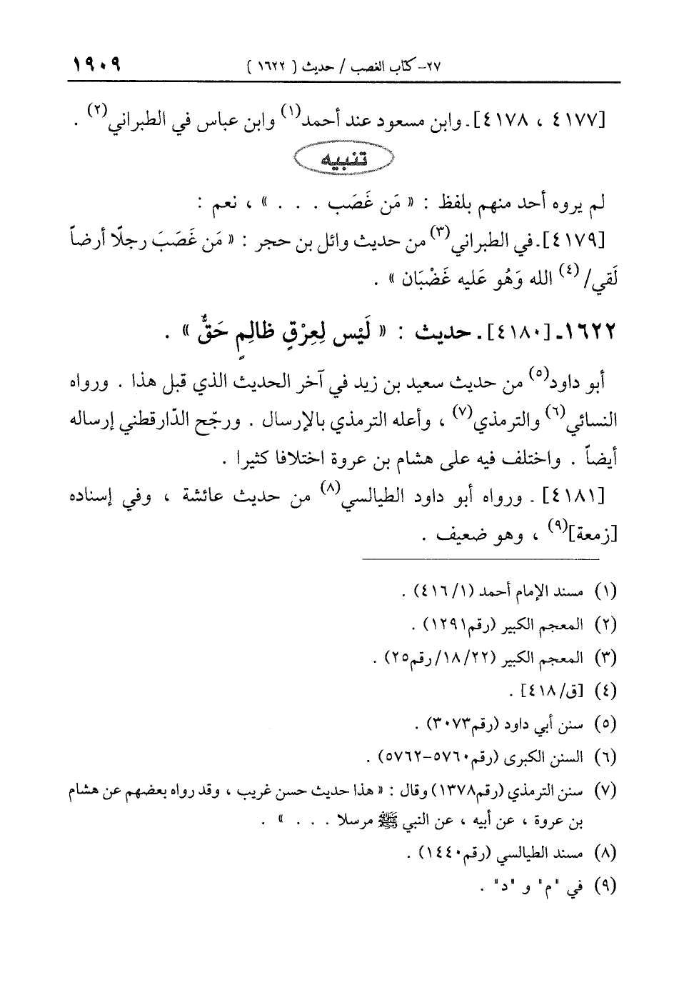 1622 - [4180]- حديث: "لَيْس لِعِرْقٍ ظالِمٍ حَقٌّ".