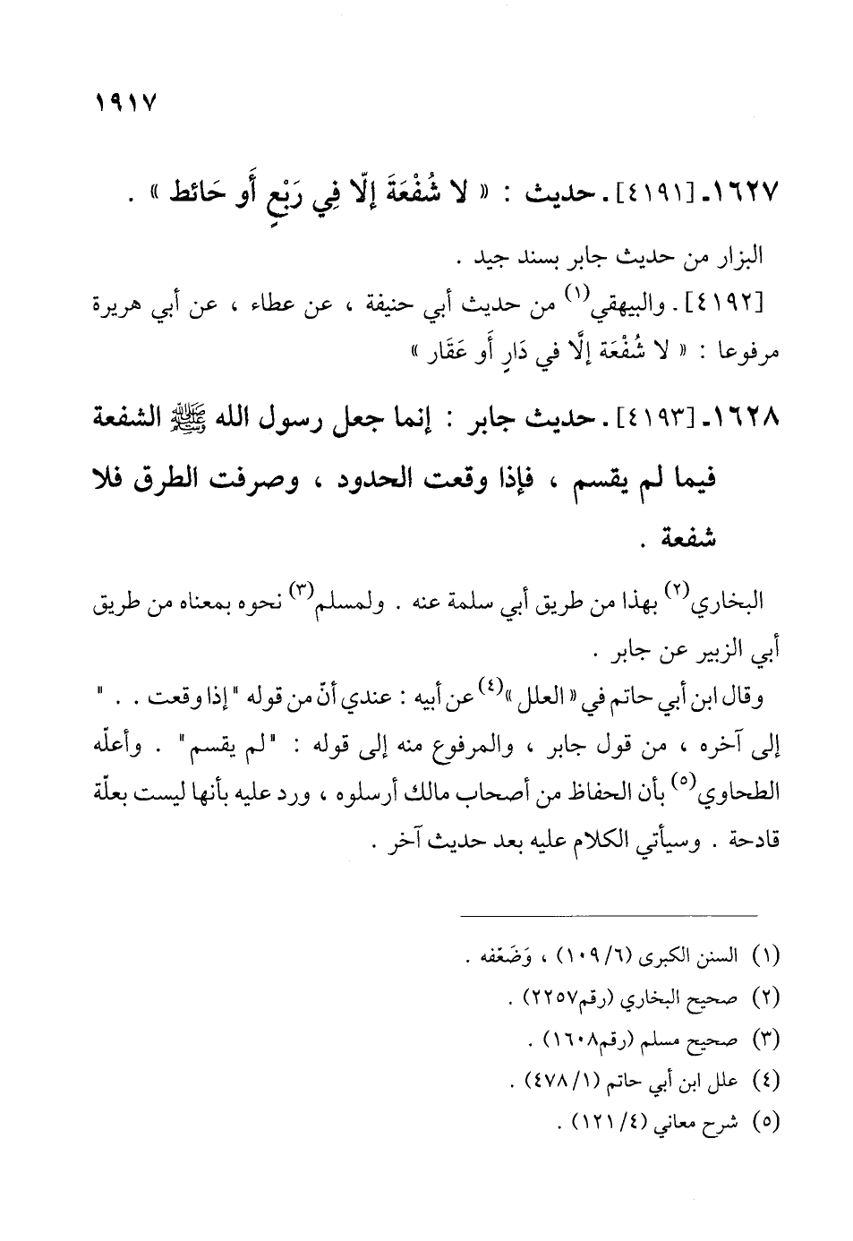 1627 - [4191]- حديث: "لا شُفْعَةَ إلَّا في رَبعٍ أَو حَائط".