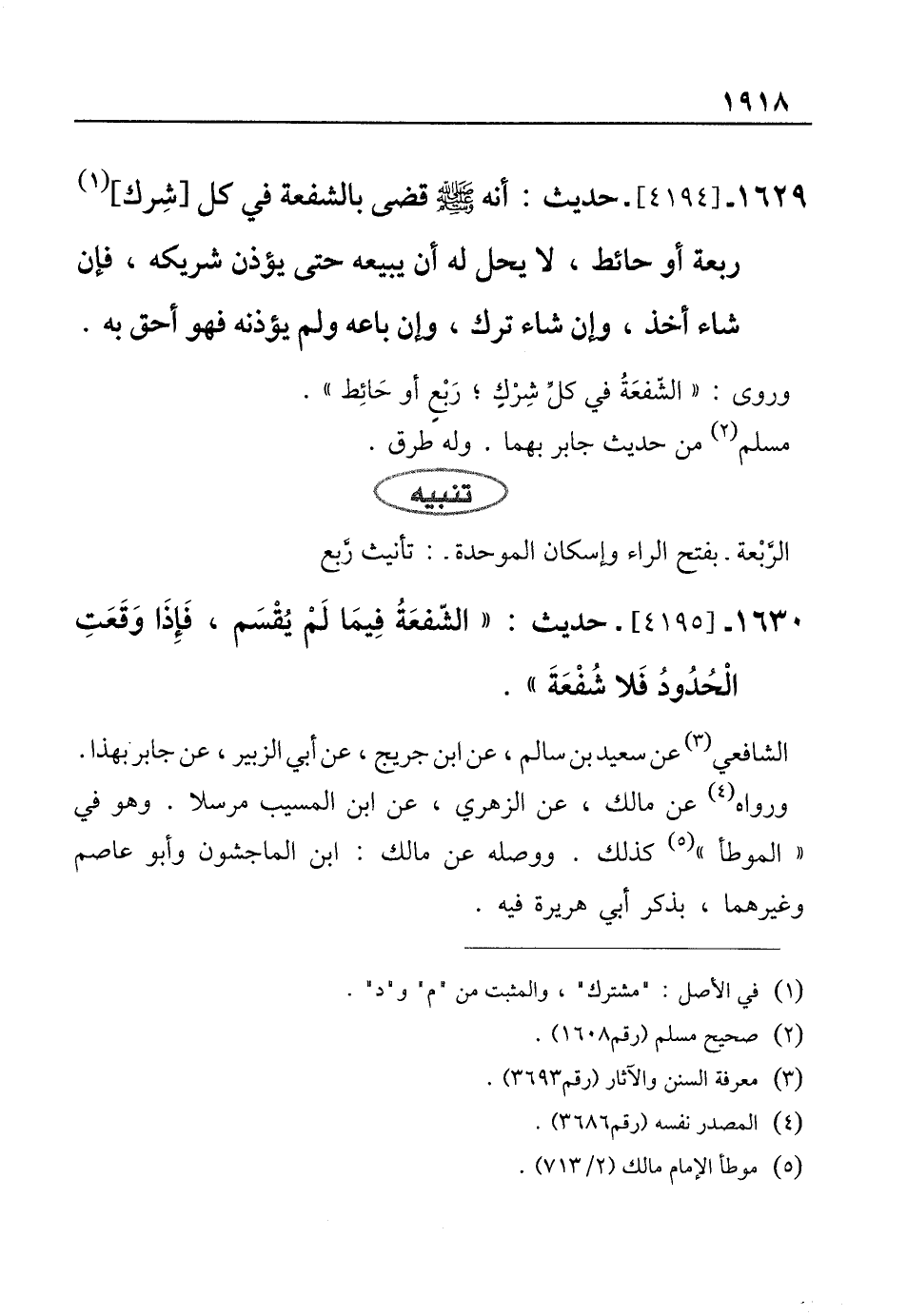 1630 - [4195]- حديث: "الشّفعَةُ فِيمَا لَمْ يُقسَم، فَإِذَا وَقَعَتِ الْحُدُودُ فَلا شُفْعَةَ".