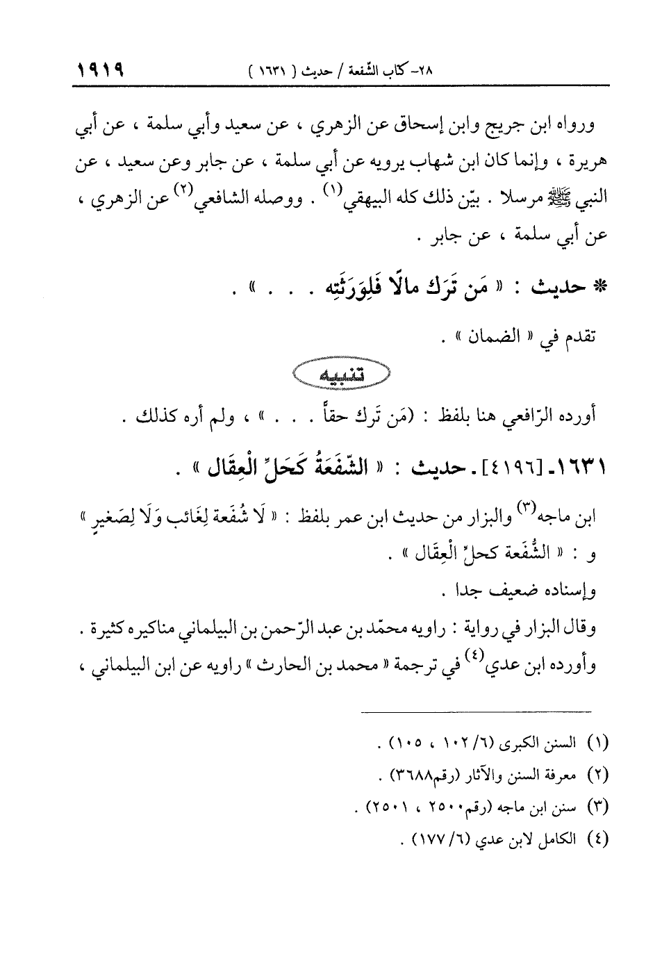 1631 - [4196]- حديث: "الشّفَعَةُ كَحَلِّ الْعِقَال".