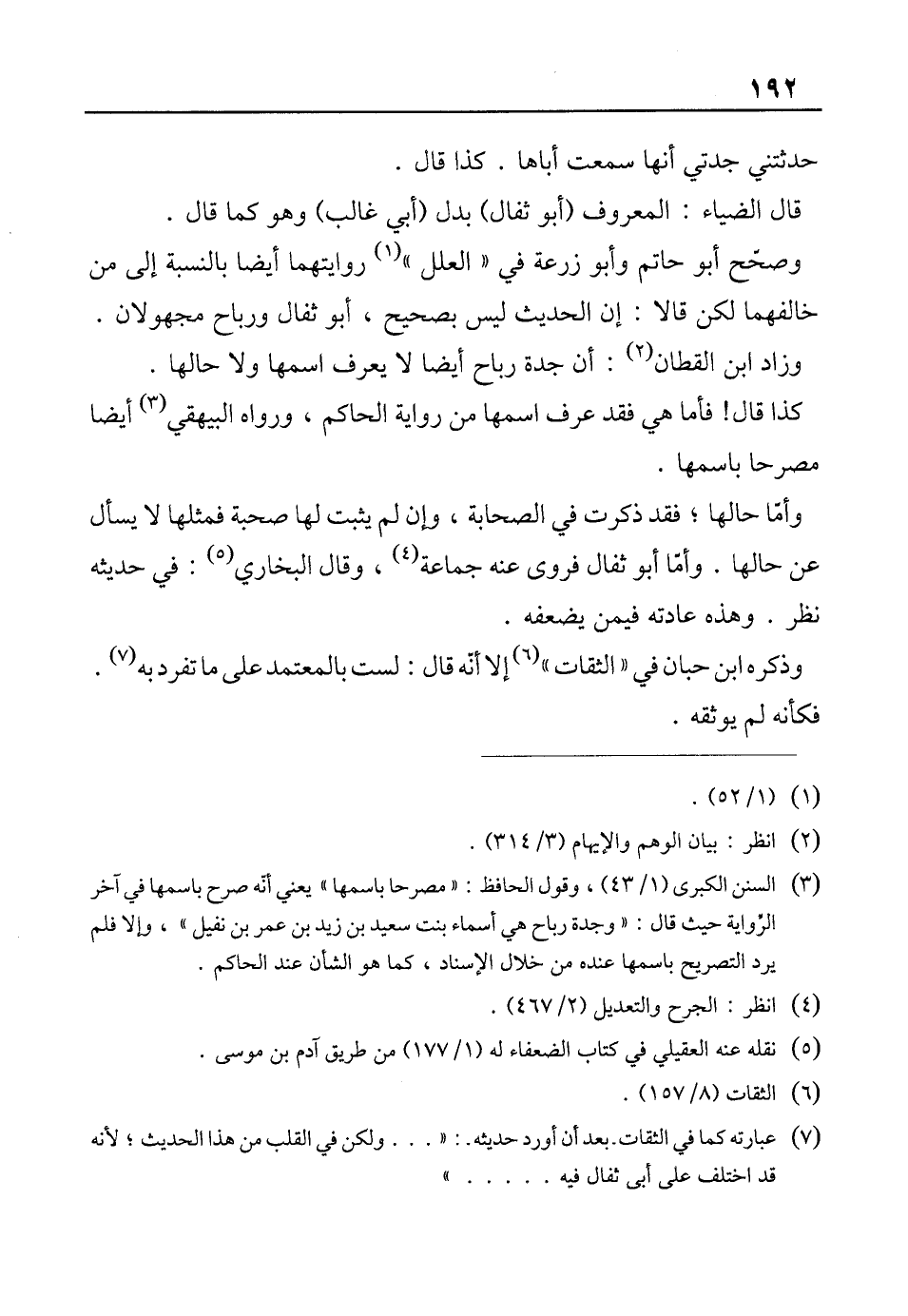(¬3) السنن الكبرى (1/ 43)، وقول الحافظ: "مصرحا باسمها" يعني أنّه صرح باسمها في آخر الرواية حيث قال: "وجدة رباح هي أسماء بنت سعيد بن زيد بن عمر بن نفيل"، وإلا فلم يرد التصريح باسمها عنده من خلال الإسناد، كما هو الشأن عند الحاكم.