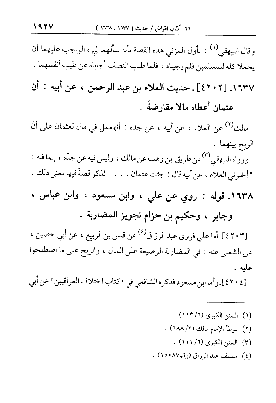 1637 - [4202]- حديث العلاء بن عبد الرحمن، عن أبيه: أن عثمان أعطاه مالًا مقارضةً.
