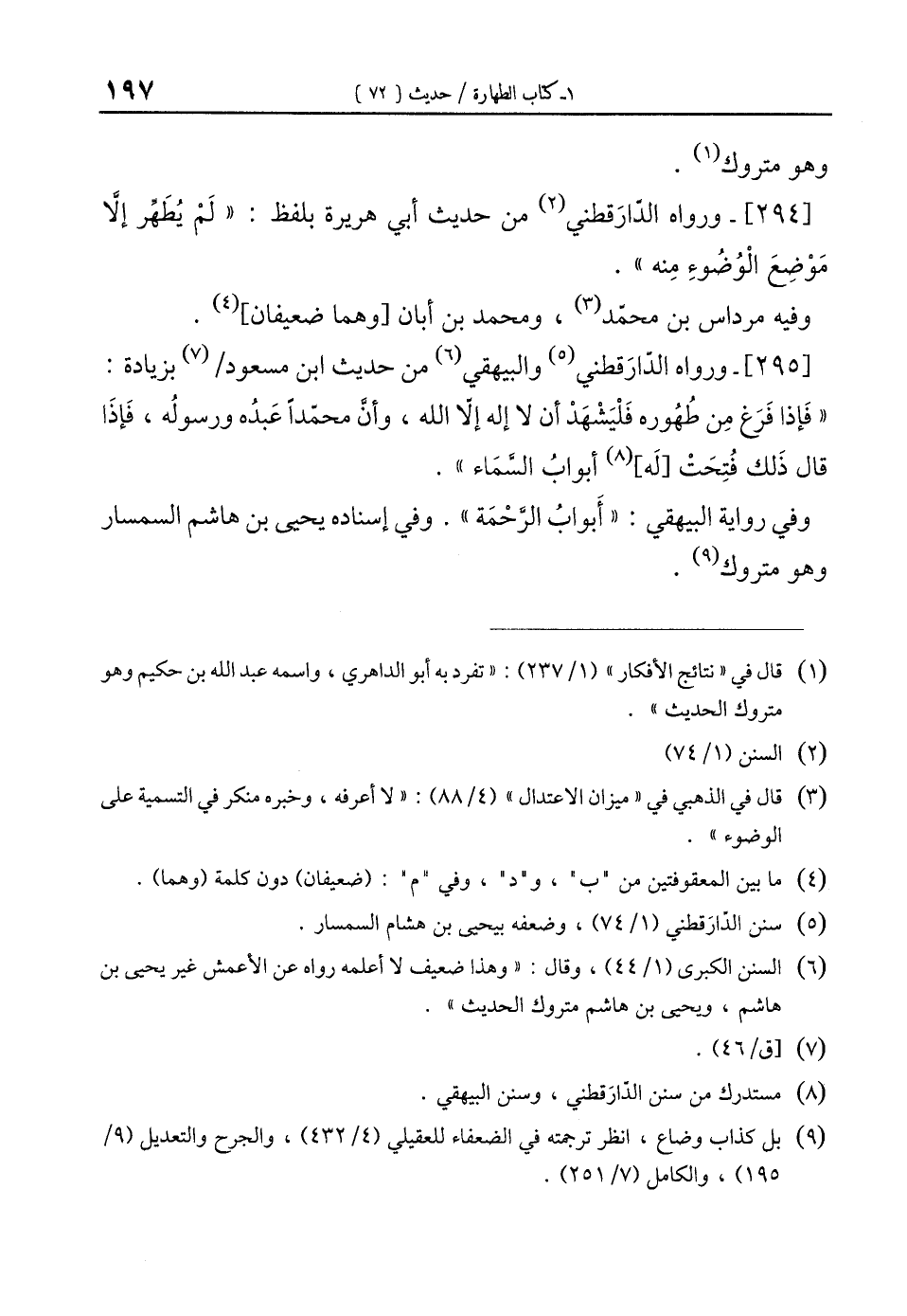 (¬5) سنن الدّارَقطني (1/ 74)، وضعفه بيحيى بن هشام السمسار.