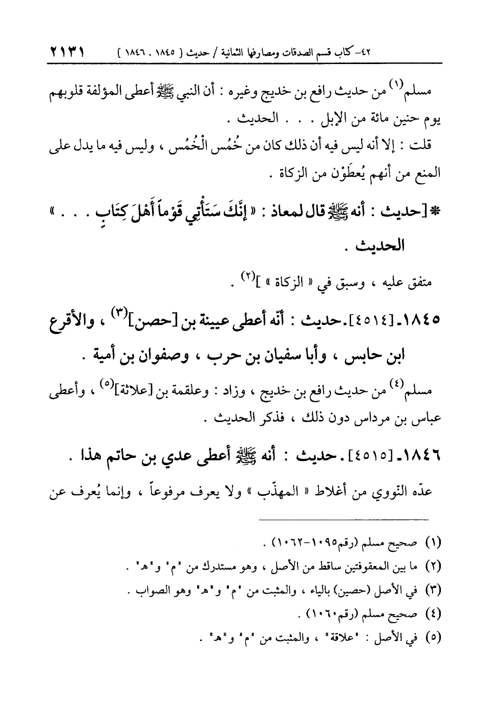 1845 - [4514]- حديث: أنّه أعطى عيينة بن [حصن] (¬3)، والأقرع ابن حابس، وأبا سفيان بن حرب، وصفوان بن أمية.