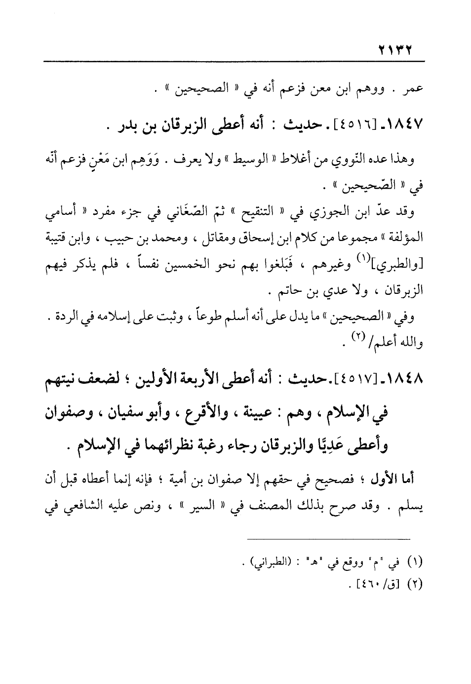 1847 - [4516]- حديث: أنه أعطى الزبرقان بن بدر.